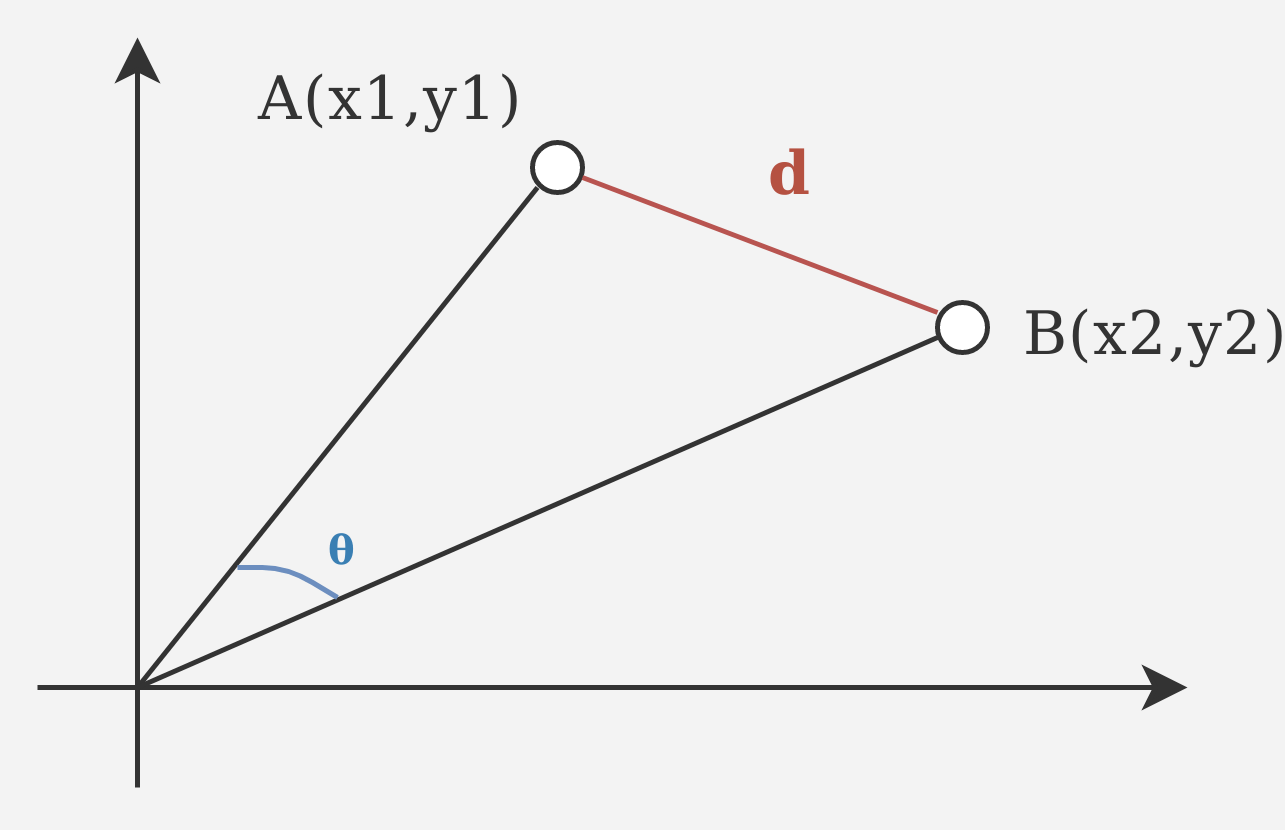 The mathematical formula for the Euclidean distance is really simple. Considering 2 points, A and B, with their associated coordinates, the distance is defined as: